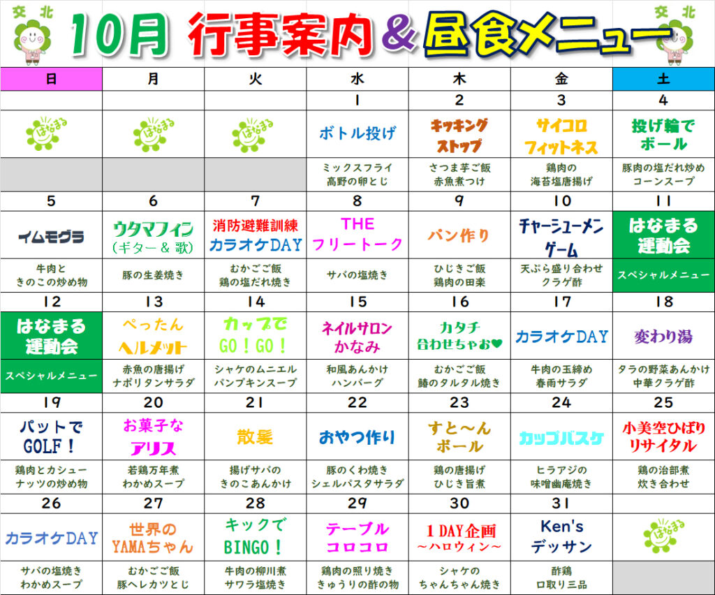 日替わりで季節の行事や他にはない独創的なイベントをはじめ、パン作りや手芸など趣向をこらした様々なレクリエーションをお楽しみください!