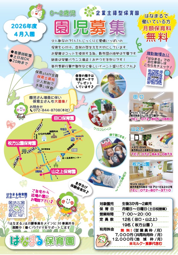 ・はなまる保育園 枚方公園 ☎072-807-3710
