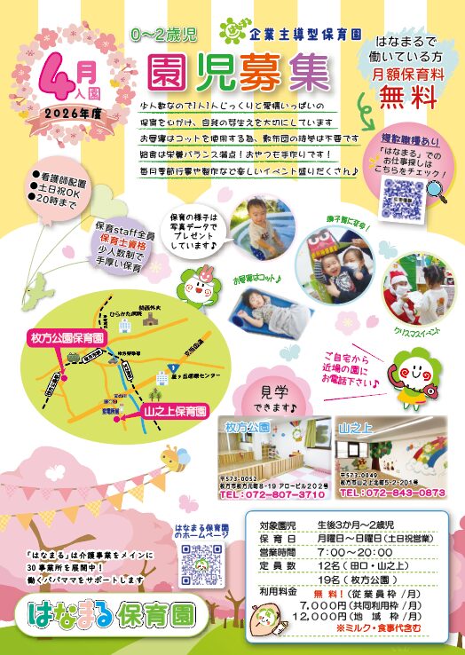 ・はなまる保育園 枚方公園 ☎072-807-3710