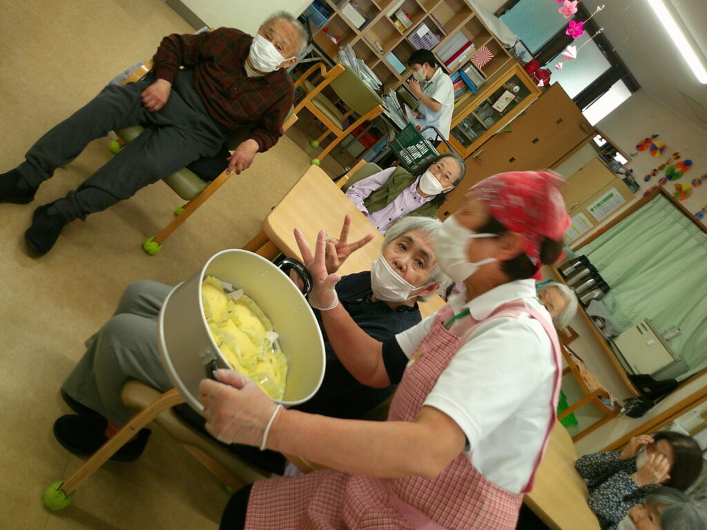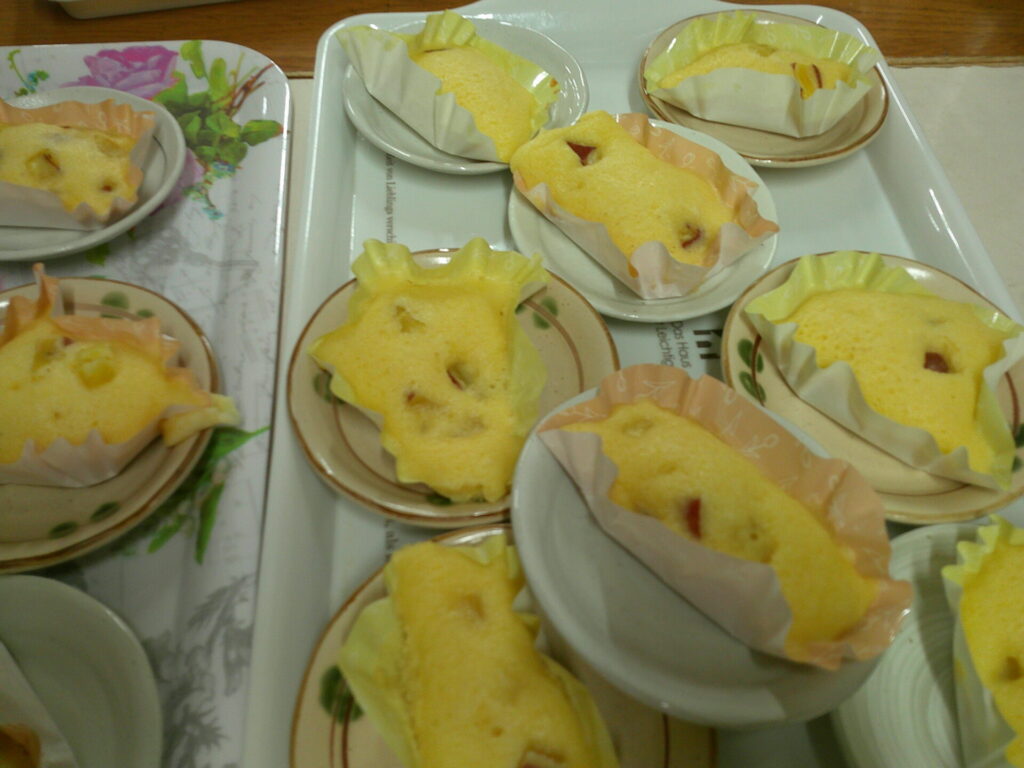 出来あがった生地にサツマイモを混ぜ合わせ型に入れていきます😋