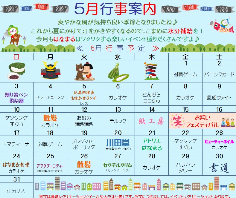 介護度関係なく皆様が参加できる楽しいイベントばかりです。