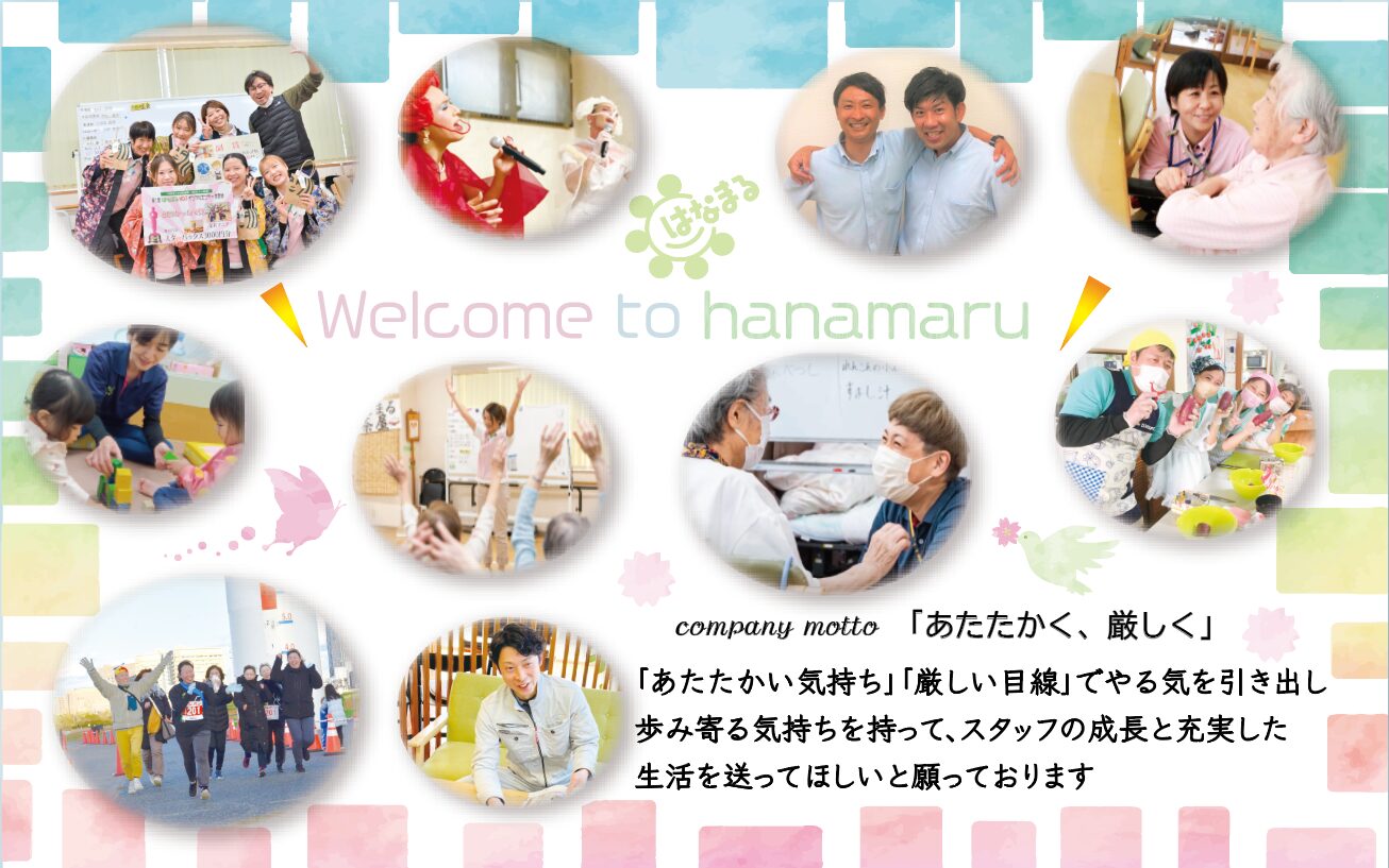私たち『はなまる』は、2004年より枚方市を中心に、デイサービスをはじめ、訪問介護、訪問看護、居宅介護支援、福祉用具貸与、有料老人ホーム、サービス付高齢者住宅、保育園などの、地域に根差した介護を心掛けて参りました。利用者様や入居者様をはじめ家族様にも御満足をいただける安心・安全で適切なサービス提供を実施出来る様、 スタッフ一同、質の高い介護を目指し毎日努力をしております。
