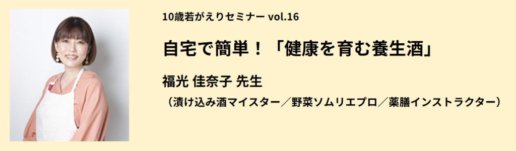 10歳若がえりセミナー vol.16 自宅で簡単!「健康を育む養生酒」/10歳若がえり隊/スポーツを通じた地域貢献 | 大阪ガス