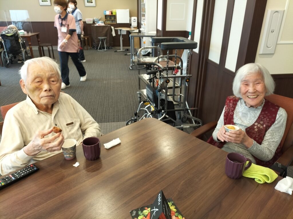 10月30日は、ハロウィンパーティーに代わる『ドーナツパーティー🍩』を開催いたしました✨ 久しぶりのティータイム企画ということで入居者様に楽しんでいただけるか少し不安でしたが、蓋を開けてみれば大盛況❗❗