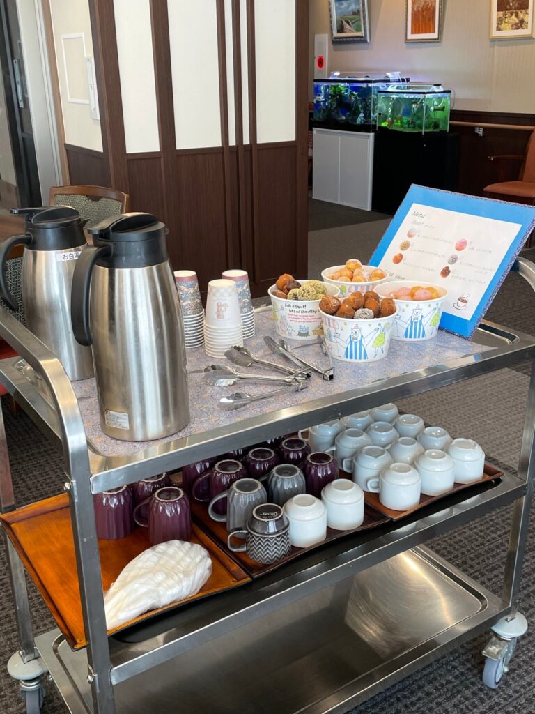 ご用意させていただいた6種類のドーナツと飲み物の中からお好きなものを選んでいただき、テーブルを囲んで和やかに過ごしていただきました☕ 昼食後という時間帯にも関わらず、ドーナツを大切そうに味わったり、頬張ったりと、その食べっぷりは想像以上でした😊