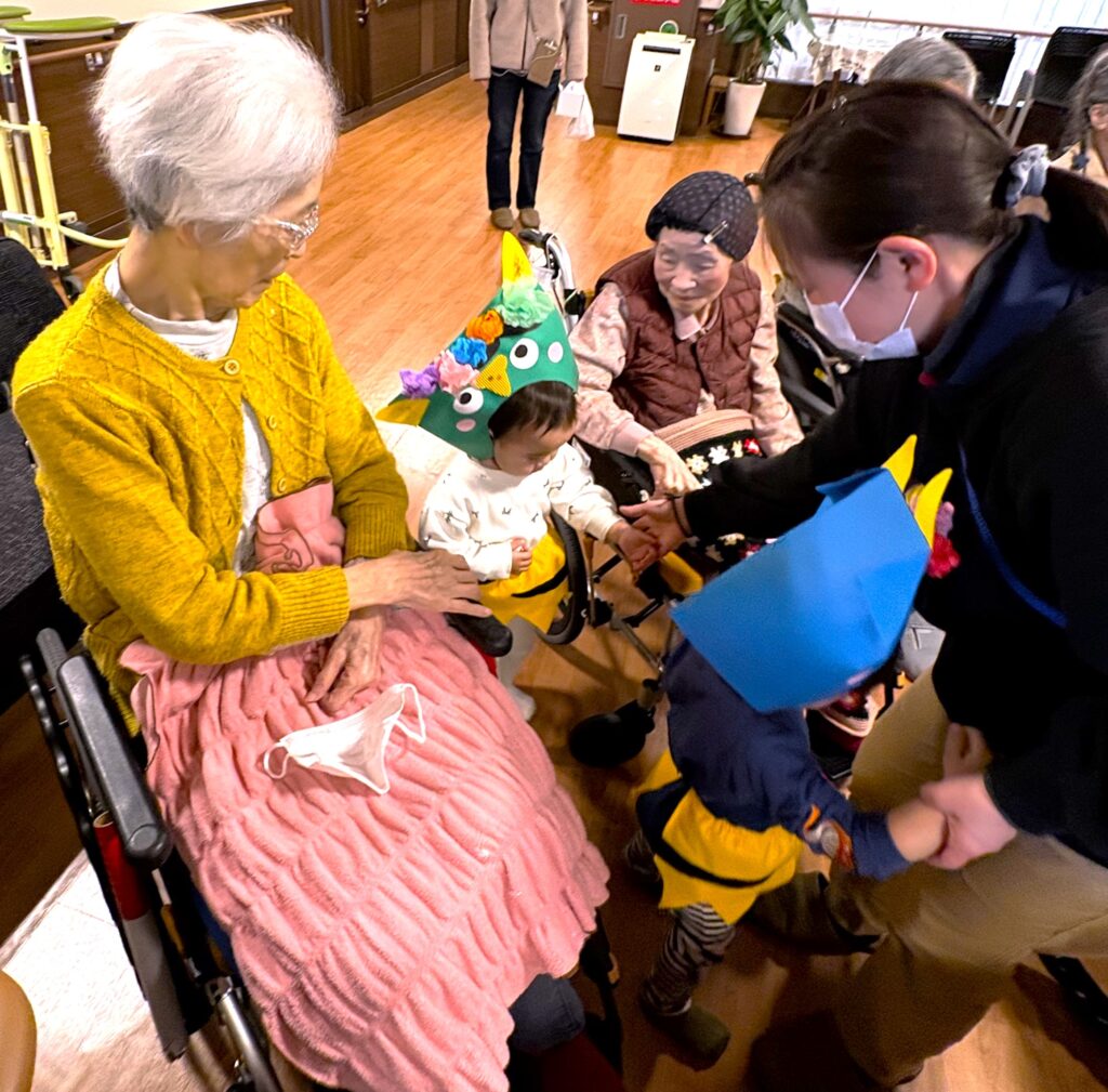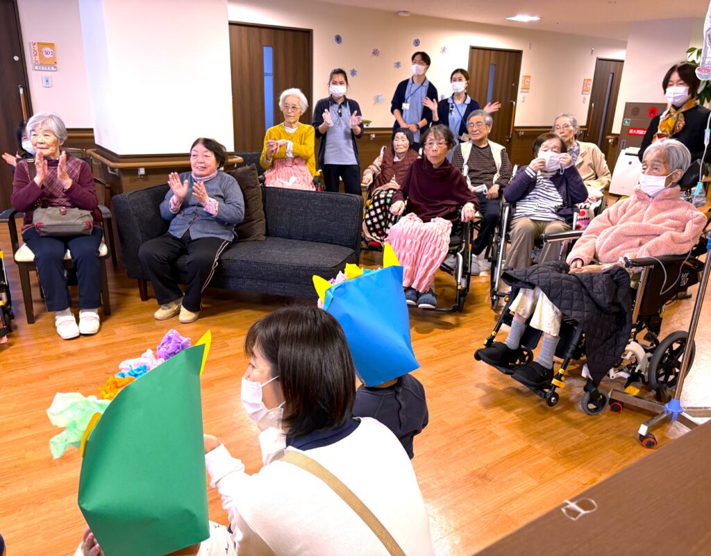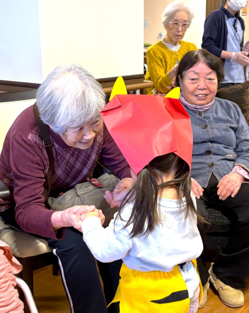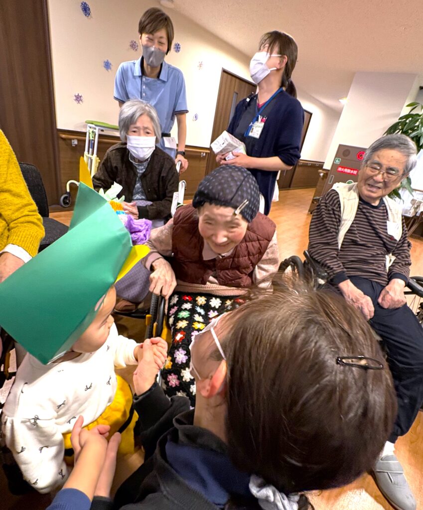 2月に入り立春を迎えましたが、寒さはまだまだ厳しい日が続いております。皆様いかがお過ごしでしょうか? さて、先日2月2日は節分でしたね👹頂には、お隣の保育園の可愛らしい園児さんが歌を届けにきてくれました✨園児さんたちの元気いっぱいの歌声と愛らしい姿に、入居者様の笑顔が溢れ、心も身体も温まるひとときとなりました。
