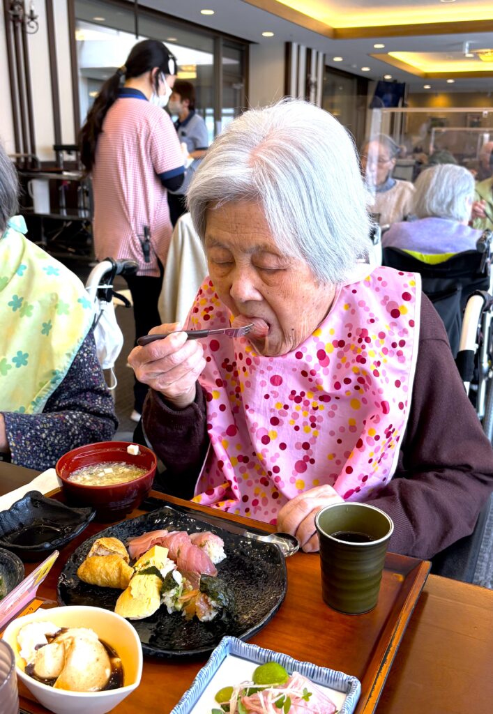 入居者様は実演開始までに、入浴やリハビリ、散歩をされ、しっかりとお腹にブリを満たすスペースを空ける準備をされておられました😂