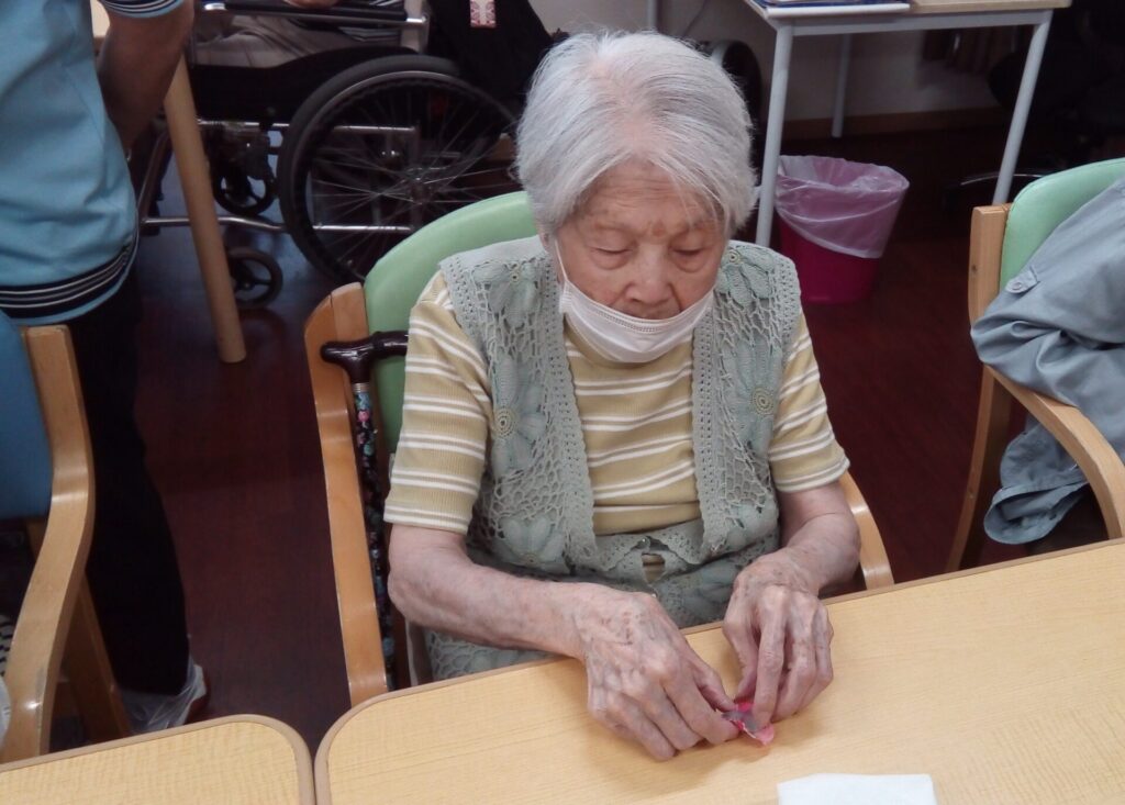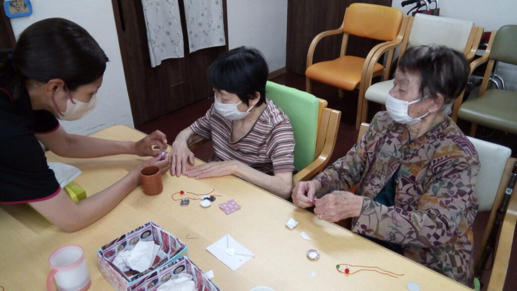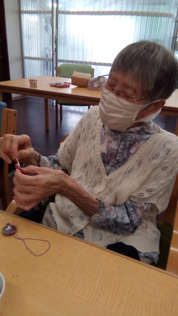 まずはまずは・・スタッフ米田さんによる《ボタンストラップ作り》です♬