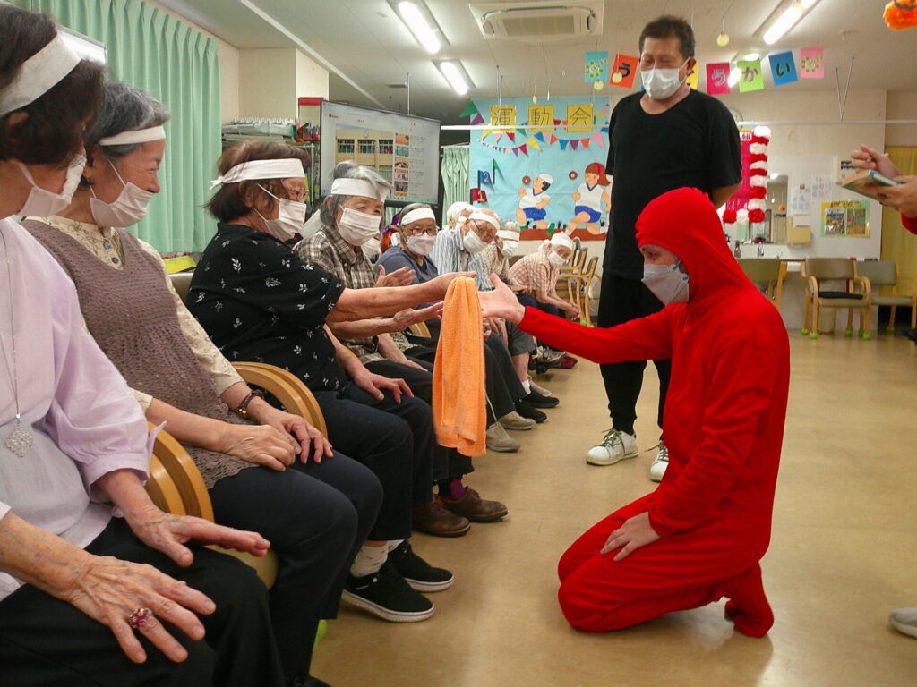 最終種目はタオル取りゲームです。皆様の手にタオルをお持ち頂いてスタッフがタオルをスッと取り上げたらスタッフの勝ちです。