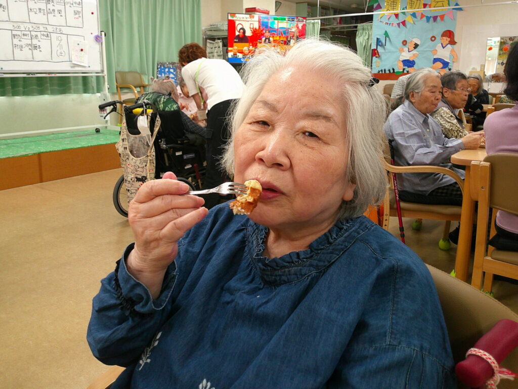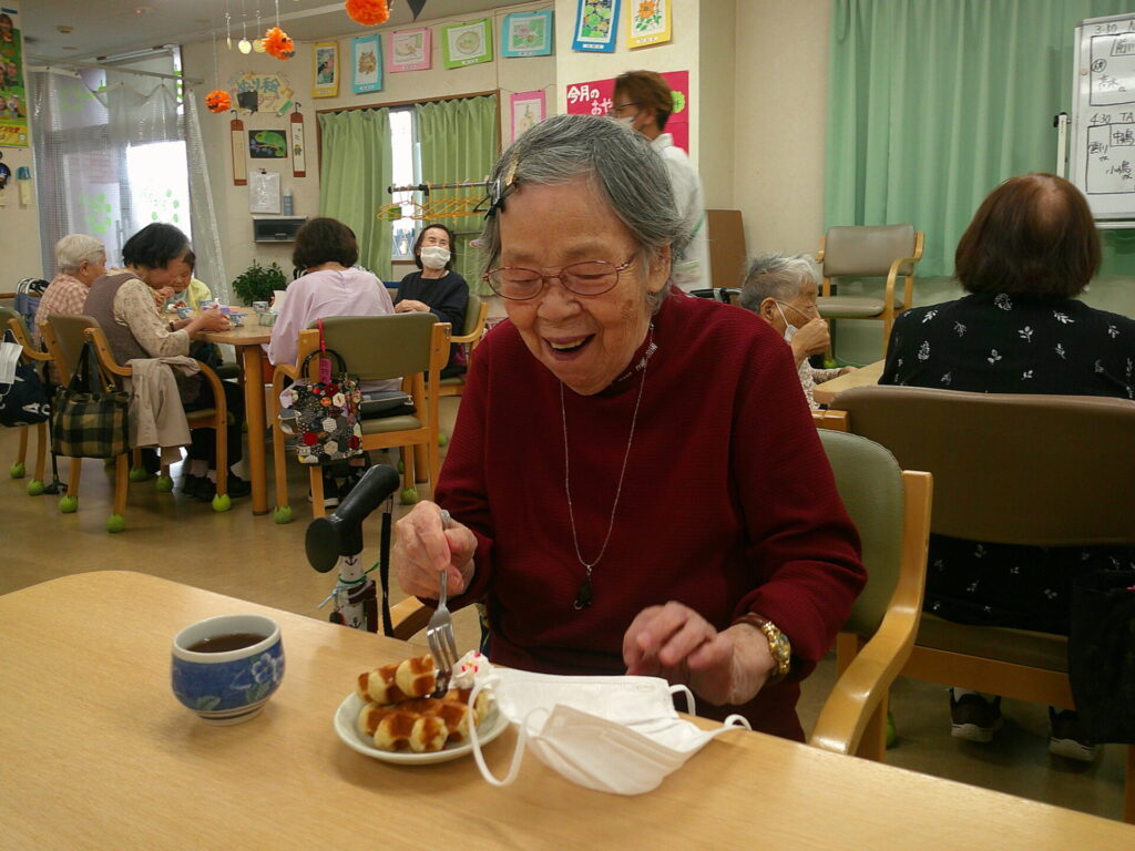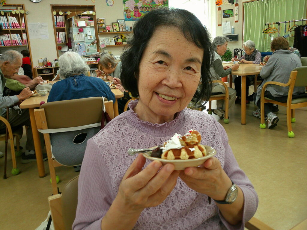 3時のおやつにはワッフルにあんこと生クレームを乗せて召し上がっていただきました。