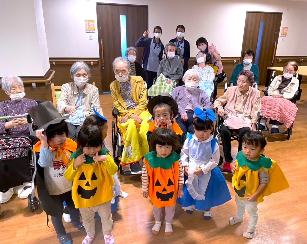 10月30日にお隣の保育園のお友達がかわいい仮装姿で遊びに来てくれました❗ かわいらしい衣装でお歌や、ちょっと照れくさそうな様子で一生懸命お遊戯を披露してくれました✨ 入居者様は、その微笑ましい姿に目を細められ素敵なひとときを楽しまれていました😊 子どもたちの純粋な笑顔と元気なパワーで、スタッフも心癒やされた一日となりました💖