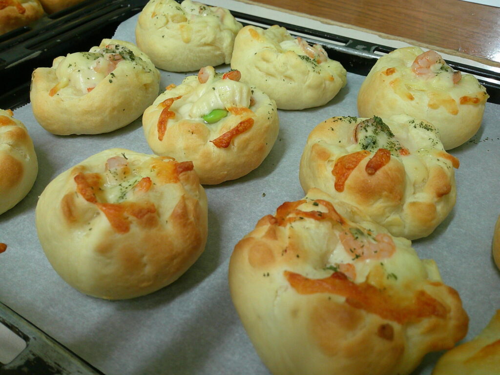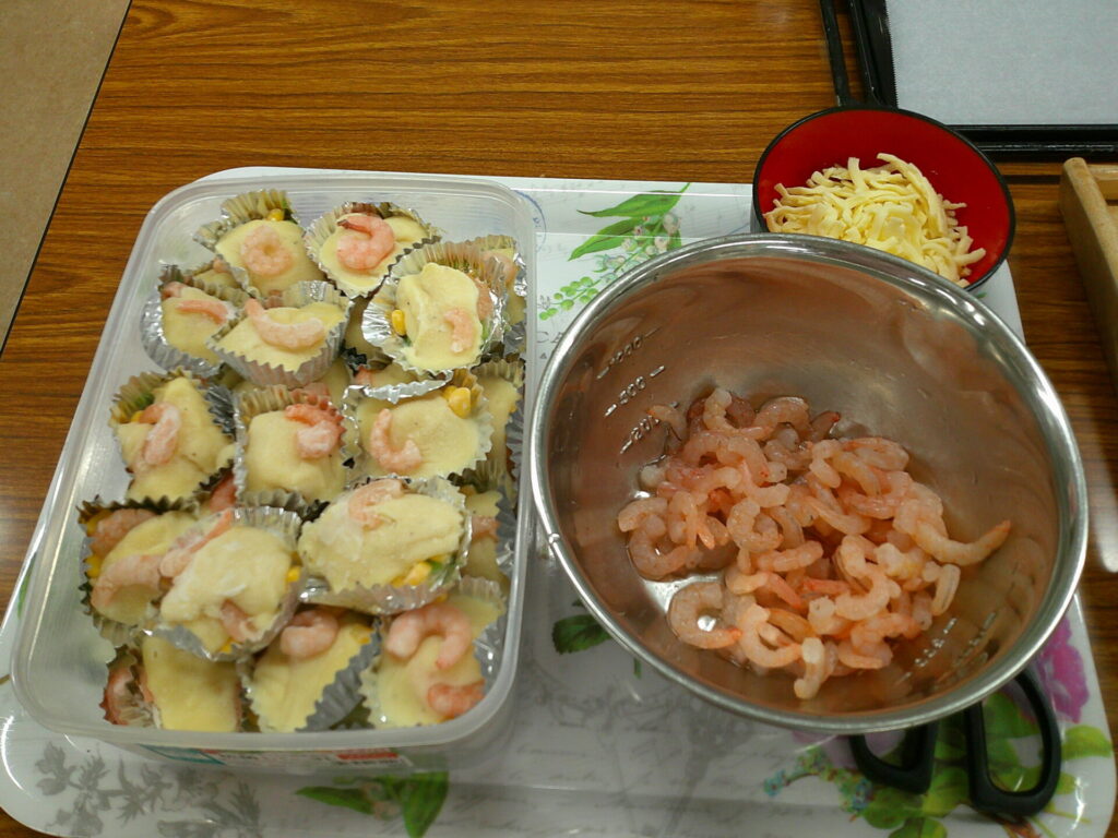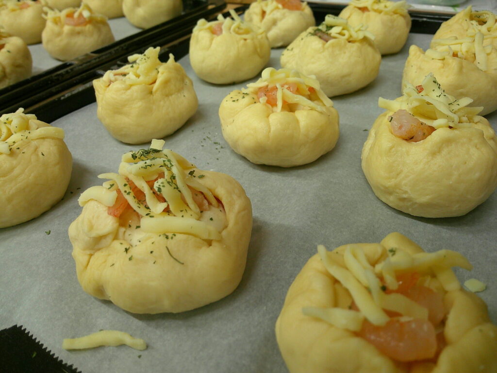 前日にスタッフが仕込んだグラタンをお飾りのエビを用意して生地に包みます~😚💗💗