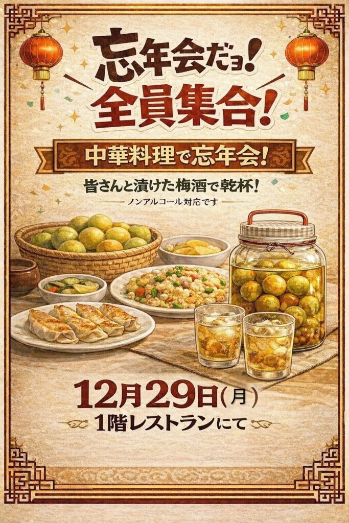 年の瀬が近づいた29日(月)入居者様とスタッフによる忘年会の夕食レクリエーションを開催しました🍻