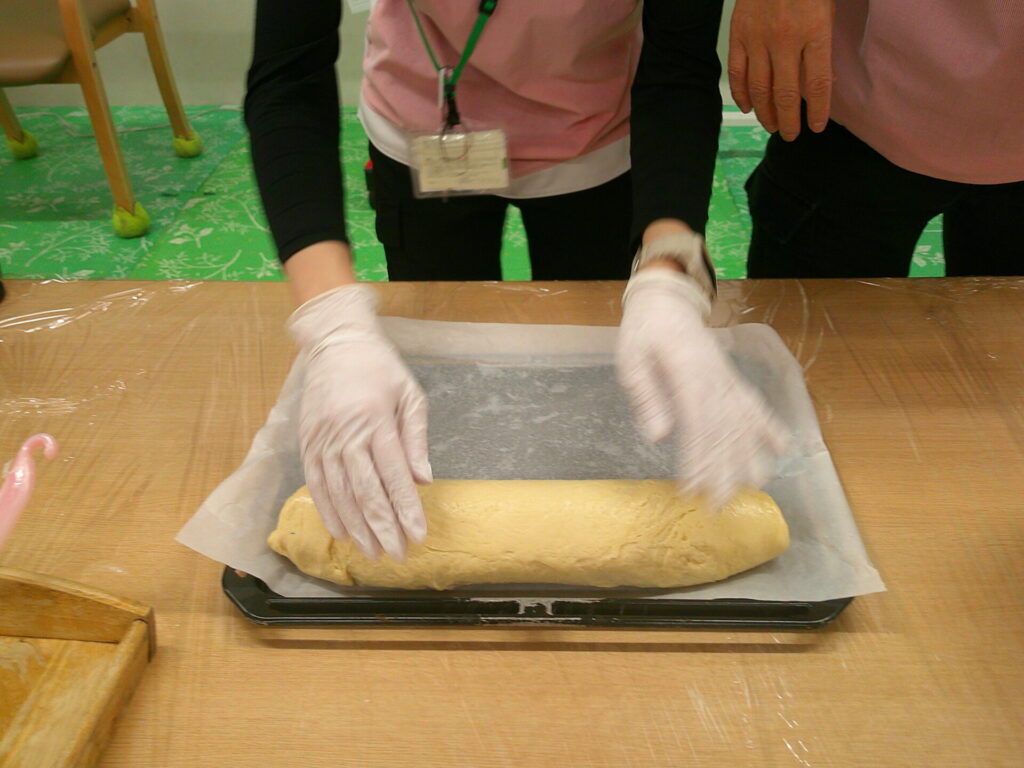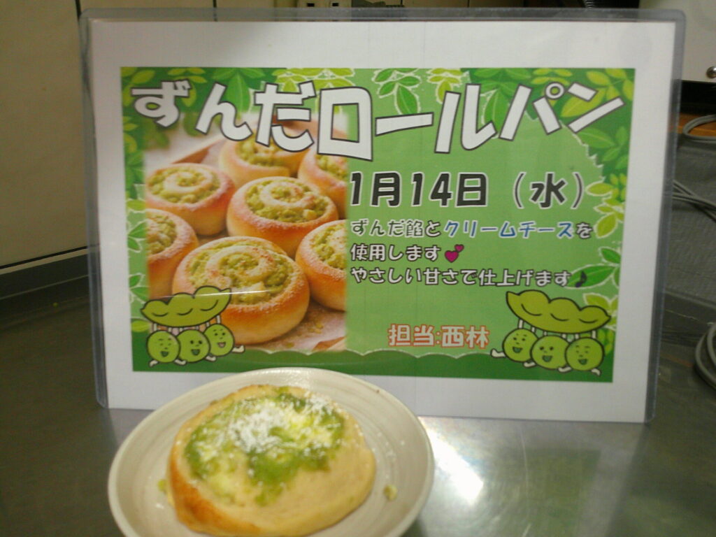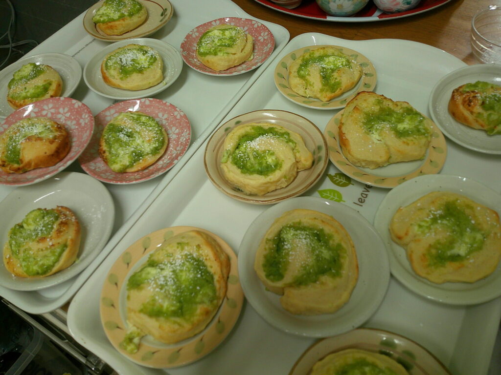 今月はずんだ餡とクリームチーズを使ってロールパンを作りました!![]()