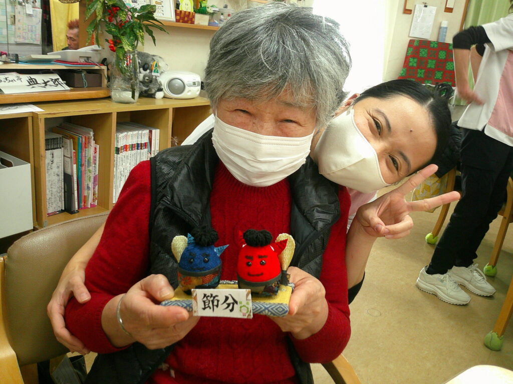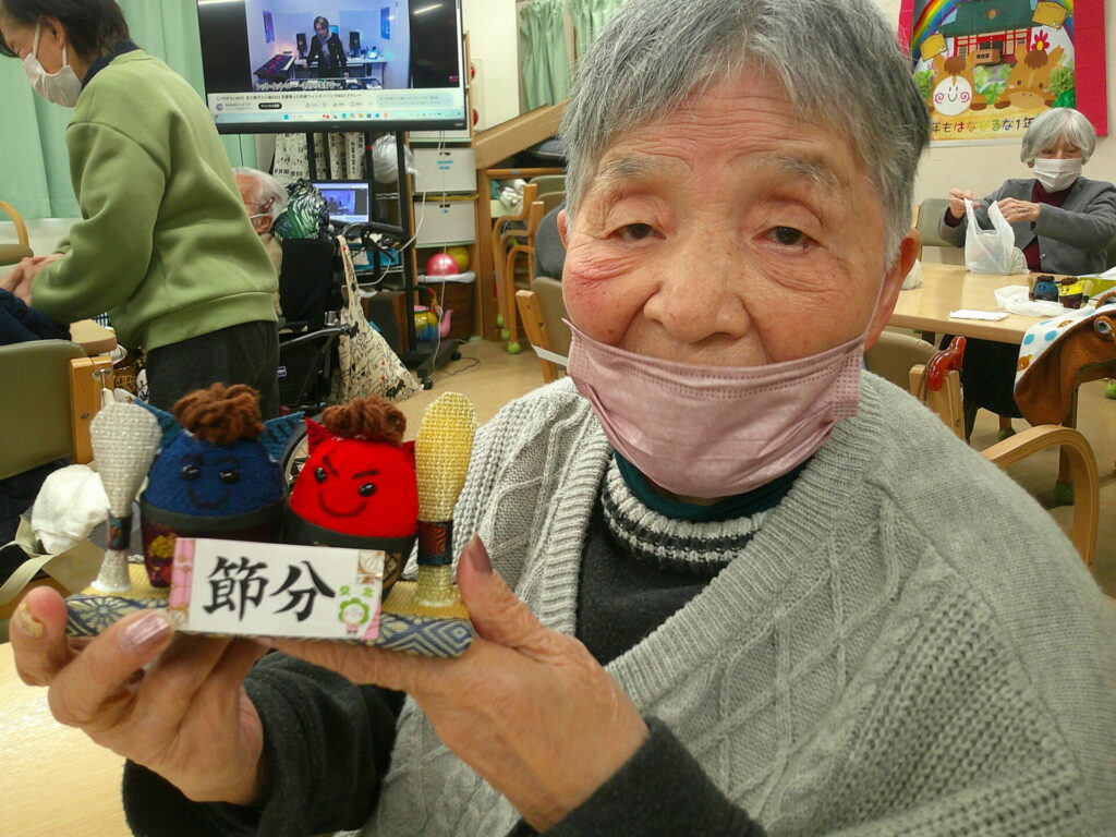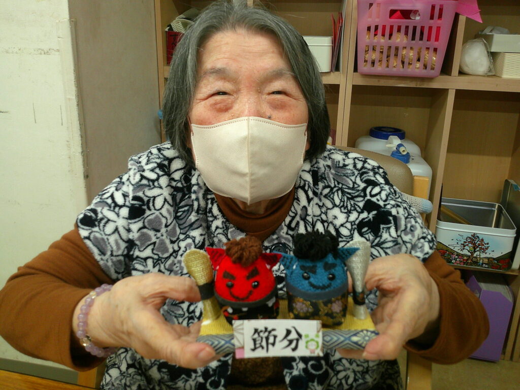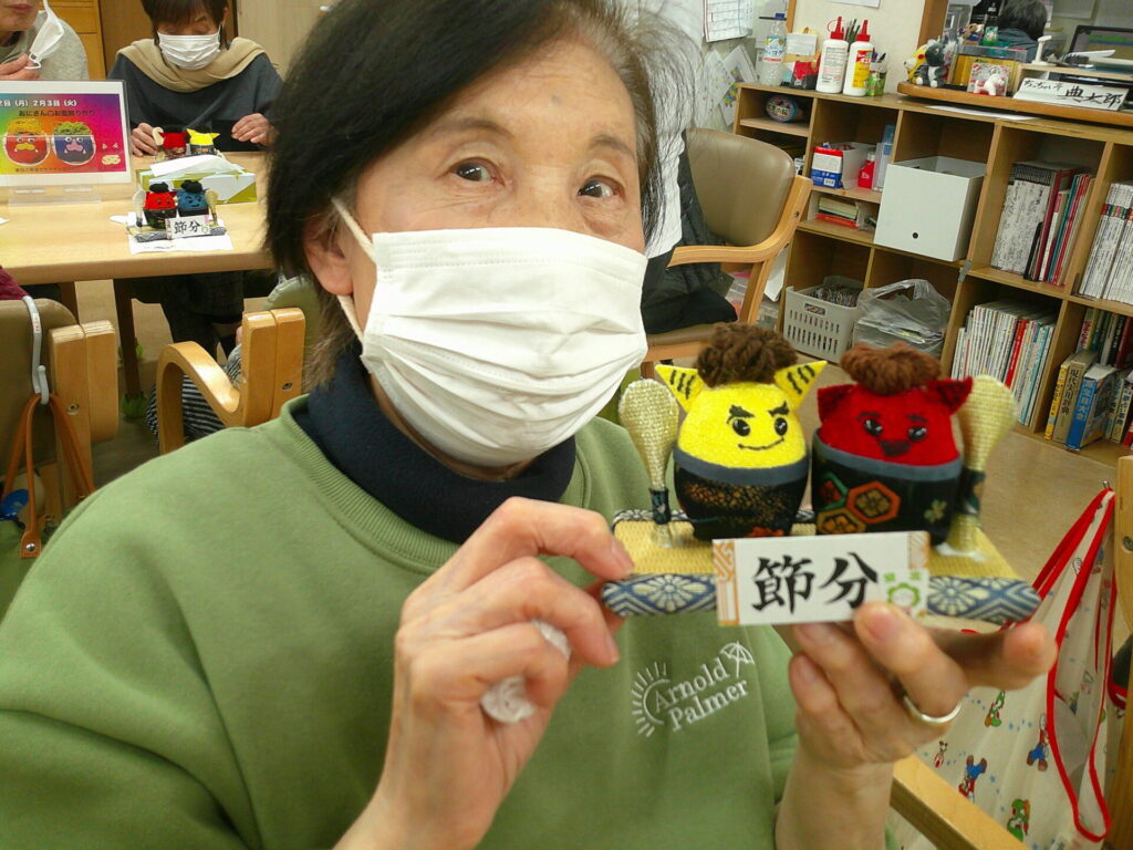 今月のクラフトクラブはミニミニ節分飾りを作りました~![]()