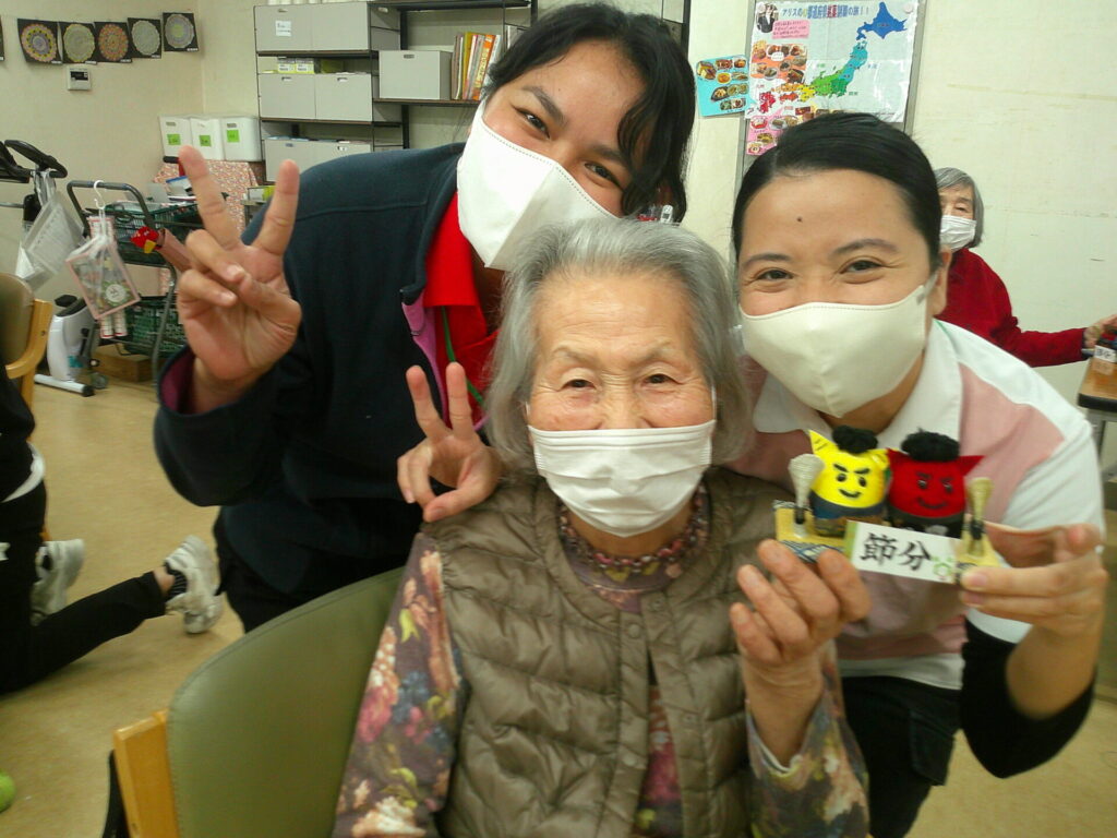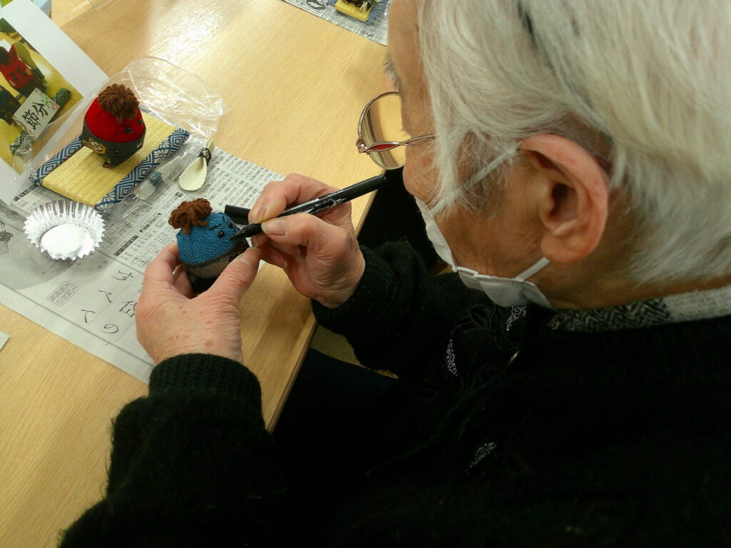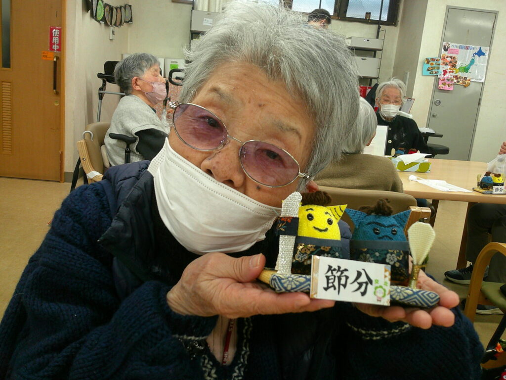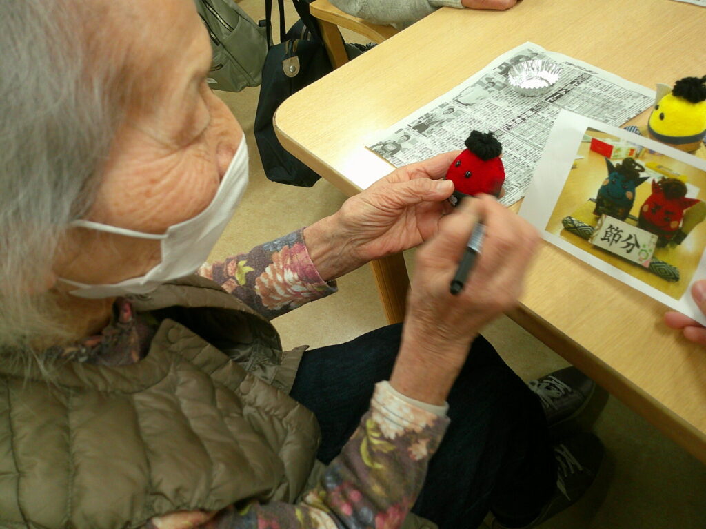 今月のクラフトクラブはミニミニ節分飾りを作りました~![]()