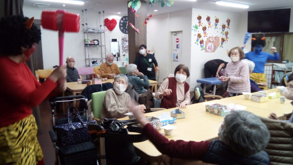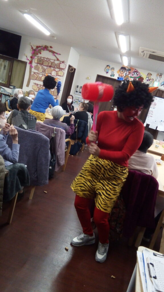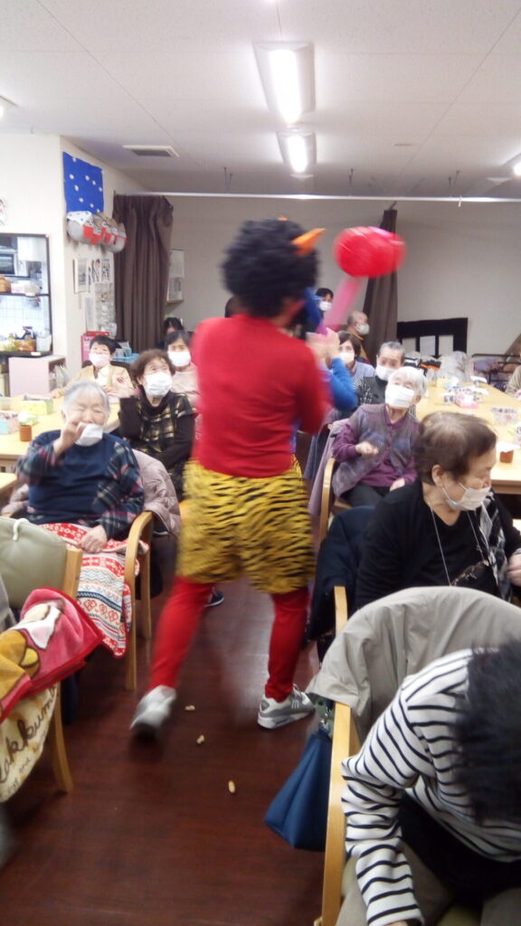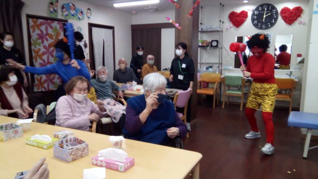 ということで豆まきをしていただきました