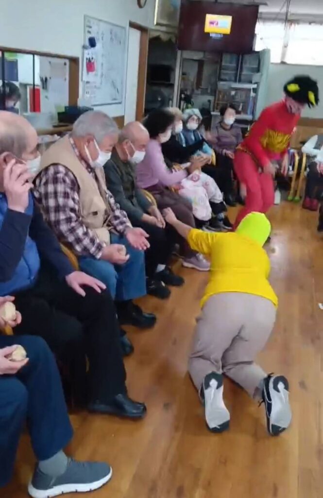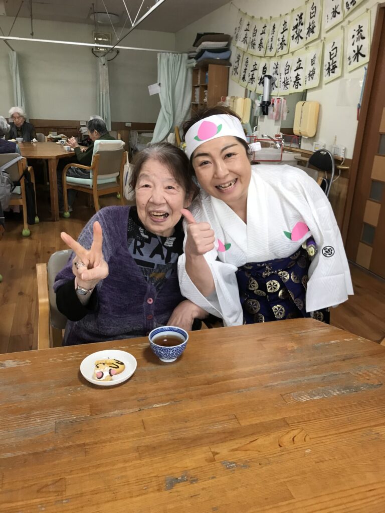 苦労をかけすぎて小さくなってしまった野中じい(管理者)と橋本ばあ(相談員)に恩を返すためにも鬼退治に向かう決意をする桃太郎!