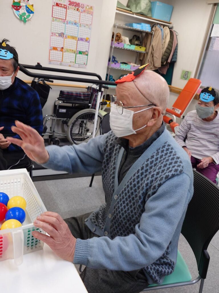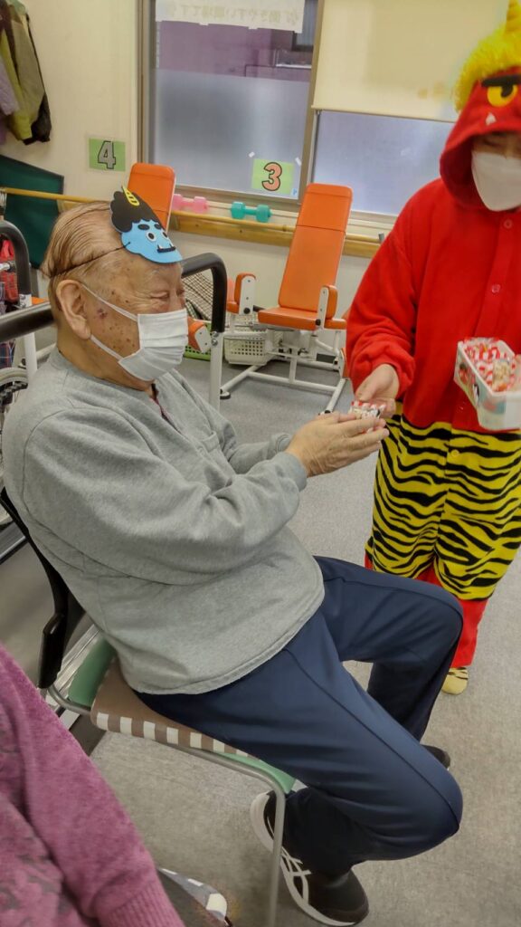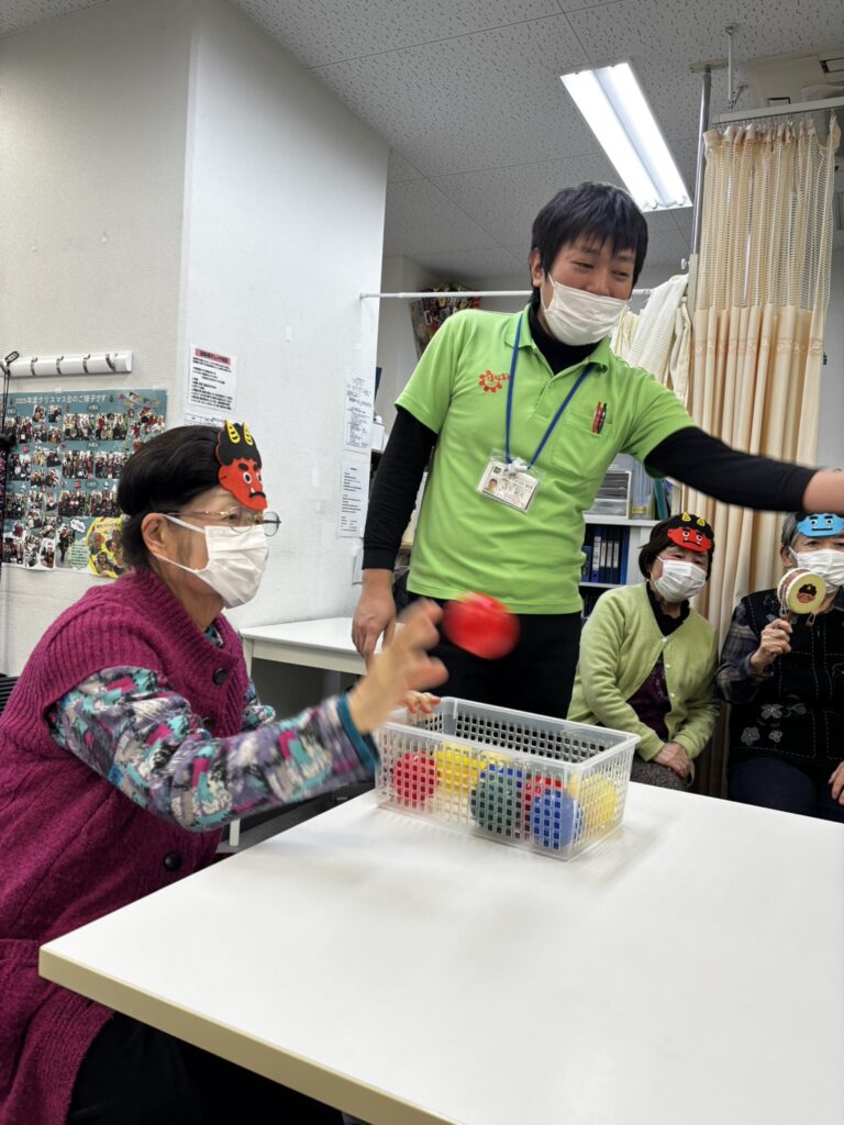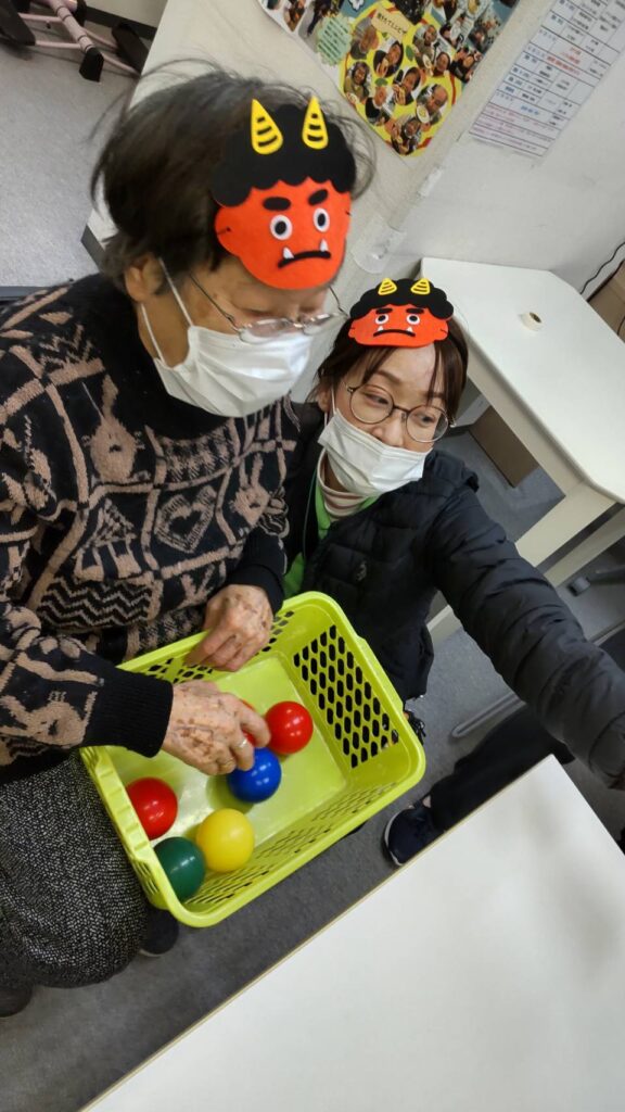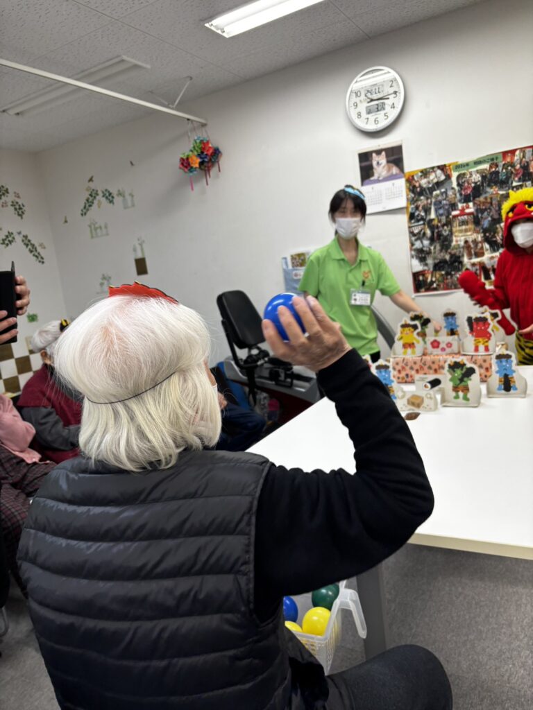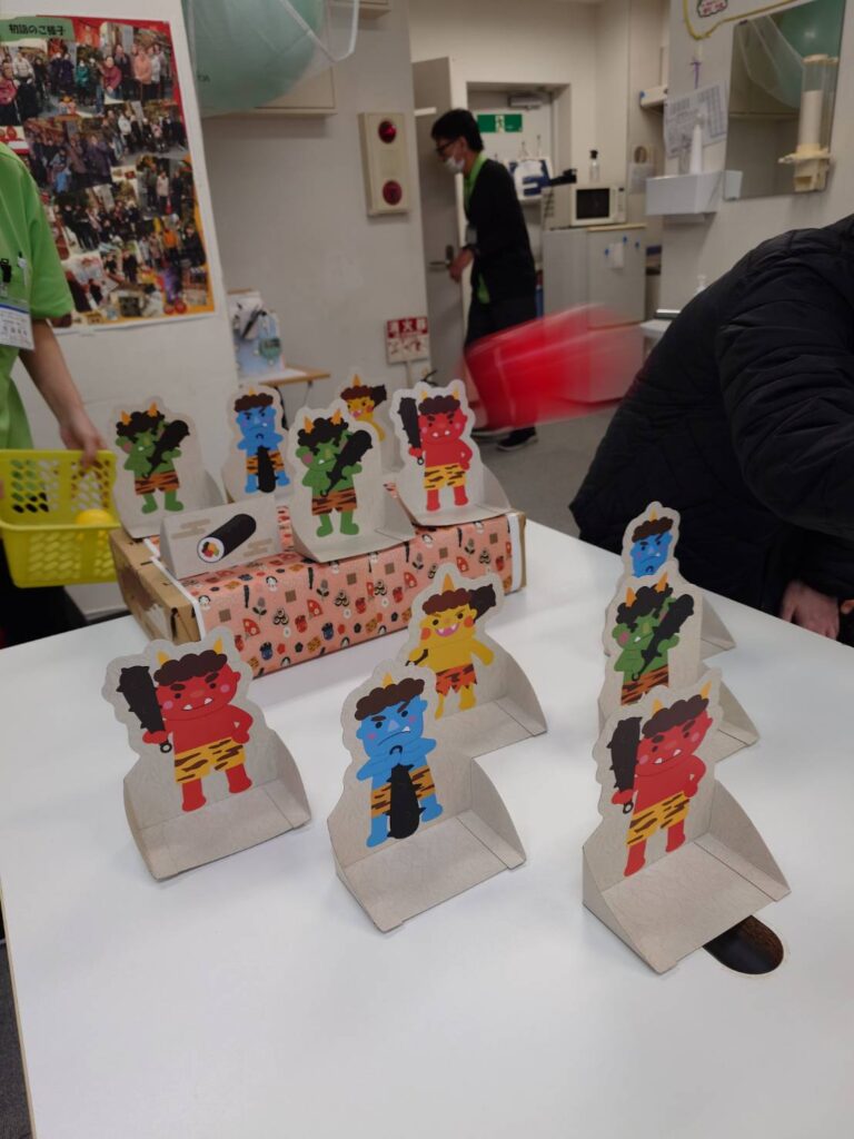 鬼に向かって豆(🥎)を当てるというゲームで、特別ゲストで赤鬼の鬼ヶ島豆太郎👹さんにも来てもらい、とっても盛り上がりました!