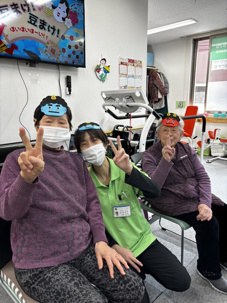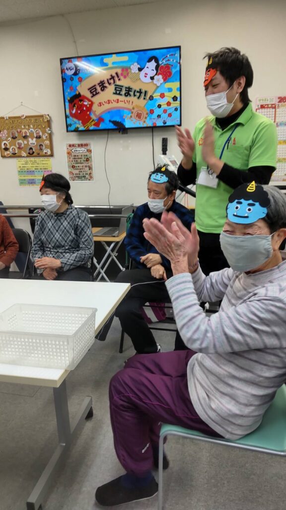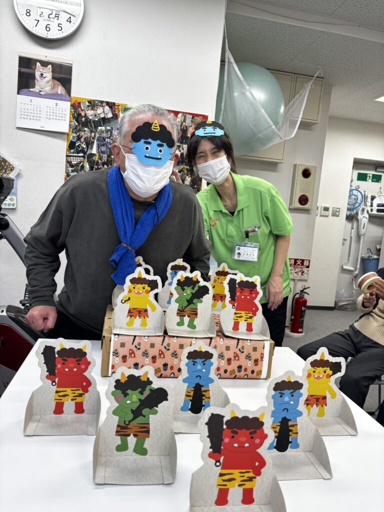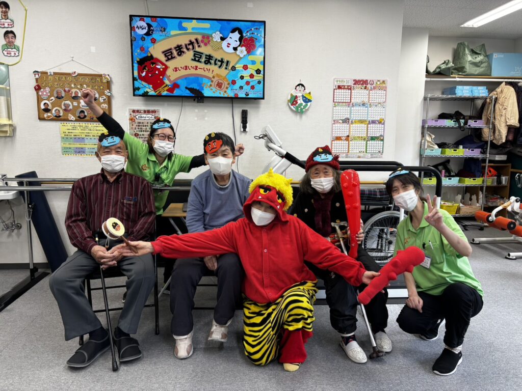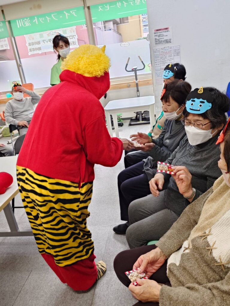 鬼に向かって豆(🥎)を当てるというゲームで、特別ゲストで赤鬼の鬼ヶ島豆太郎👹さんにも来てもらい、とっても盛り上がりました!