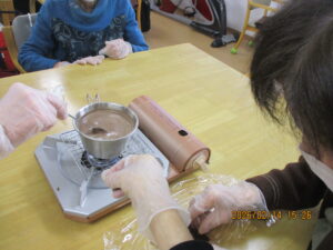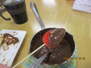 おやつに「チョコレートフォンデュ」を召し上がって頂きました。
