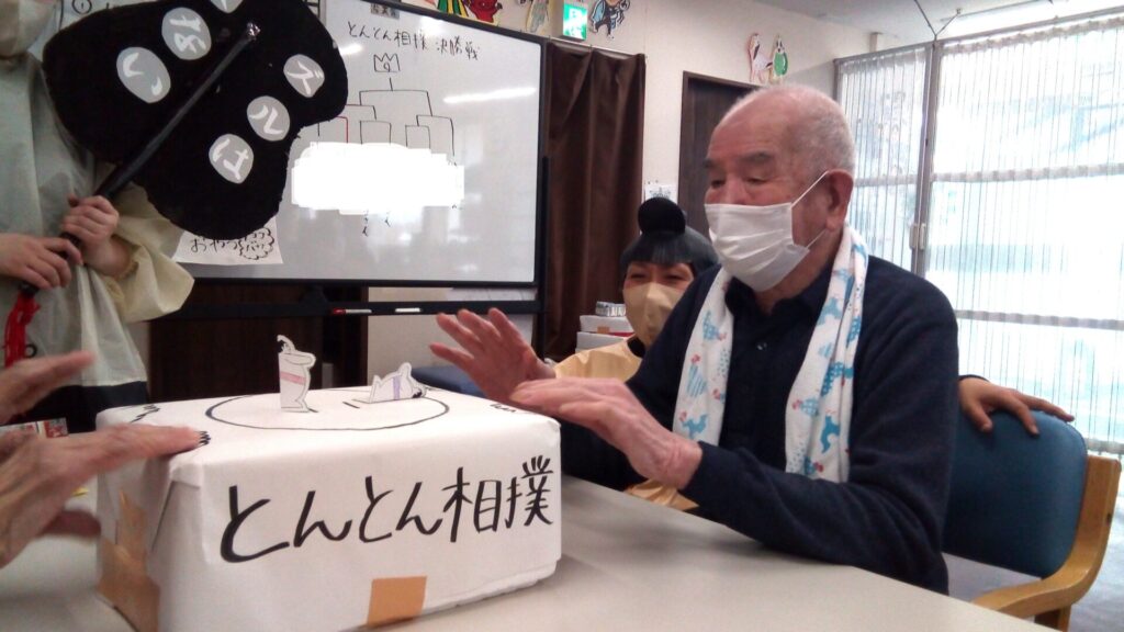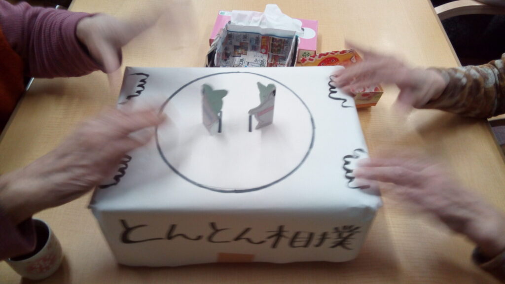 相撲のコマはみなさまに手作りしていただいたコマを使いました!!