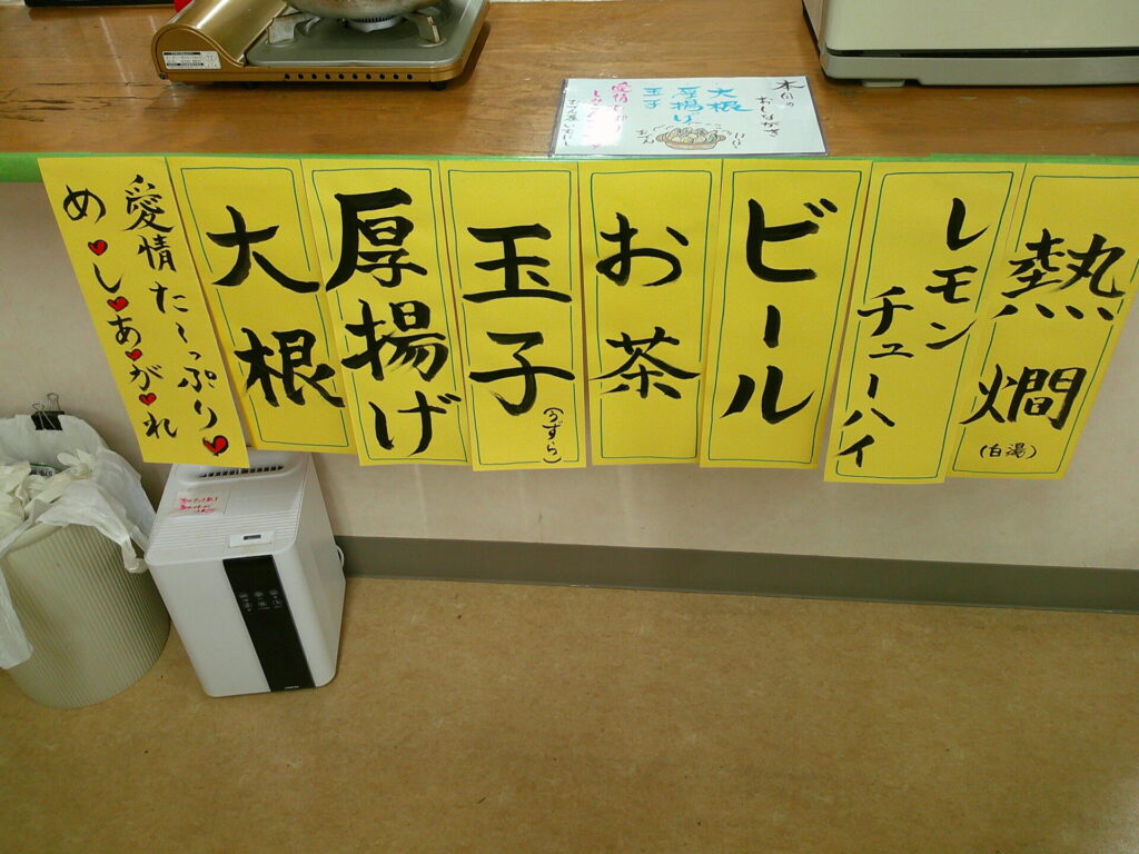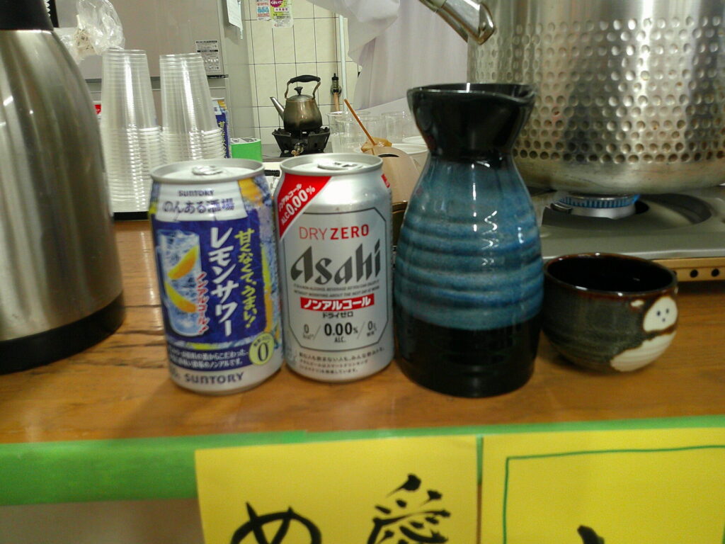 飲み物はビール、レモンチューハイ(ノンアルコール)、熱燗(白湯)をご用意(^^♪