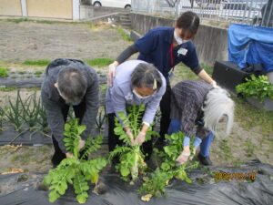 少し収穫が遅れて、畑ベテランの皆様はすぐに