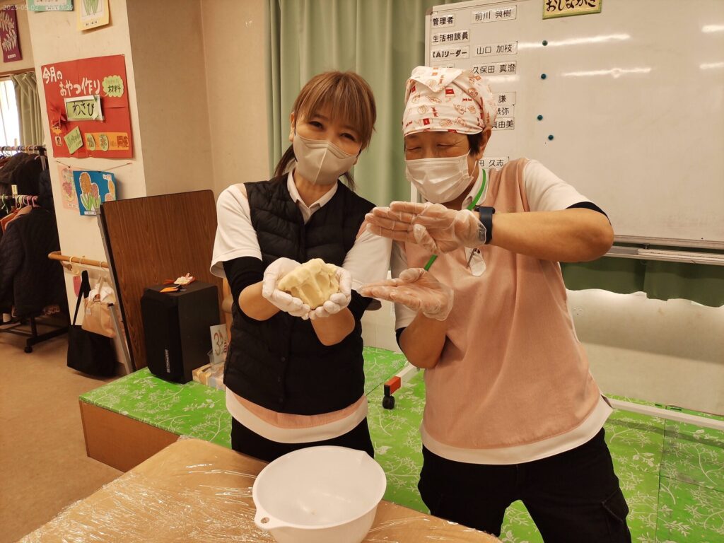 デイサービス交北今月のおやつのお題が【ワサビ】ということでワサビクッキーを作りました![]()