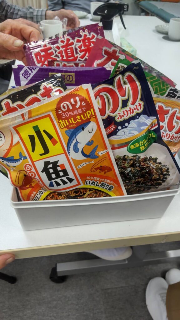 今回はたくさんのふりかけをご用意し、お好きなものを選んで頂きました。